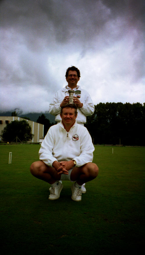 Switzerland v Wales 2001 The victorious Welsh Team (James Mackay, Mike Evans, Chris Williams and David Walters) The captains and the trophy - Chris Williams and Peter Payne